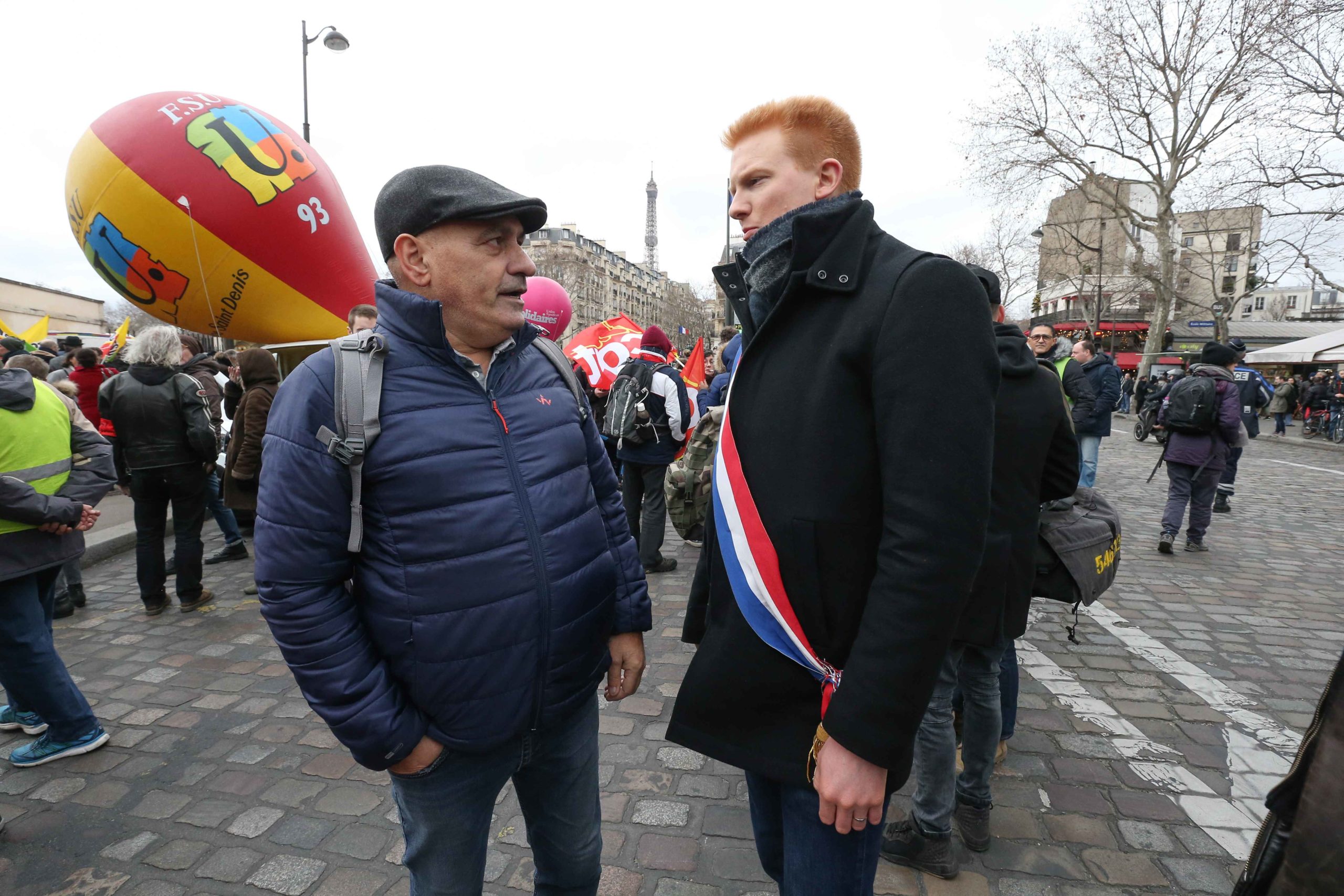 « On veut aller au bout, jusqu’au retrait. On est encore fortement en grève. À la SNCF, il y a encore un beau bazar, avec beaucoup de trains supprimés. Les copains de la RATP tiennent bon, et il y a d’autres secteurs qui se mettent en grève, il y a des AG tous les jours », a déclaré Mathieu Bolle-Reddat, conducteur de train de la ligne C du RER, de la CGT-Cheminot.