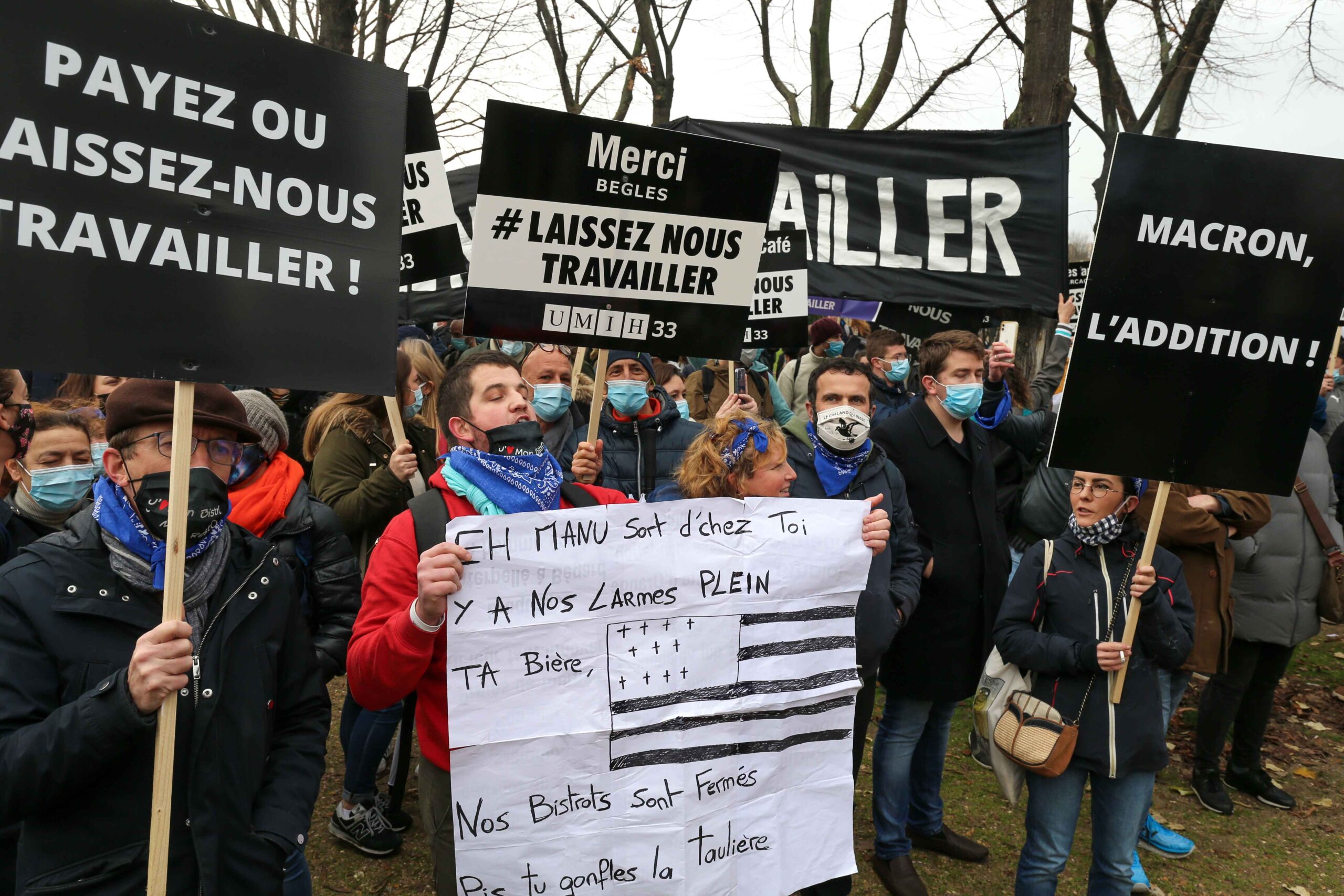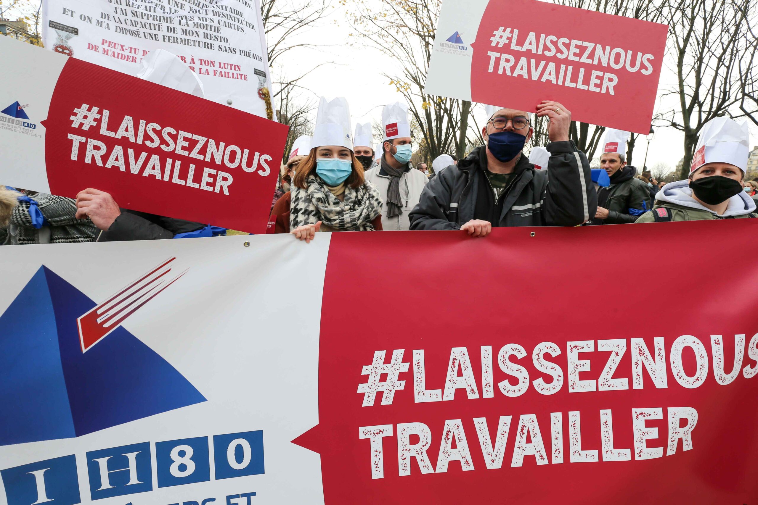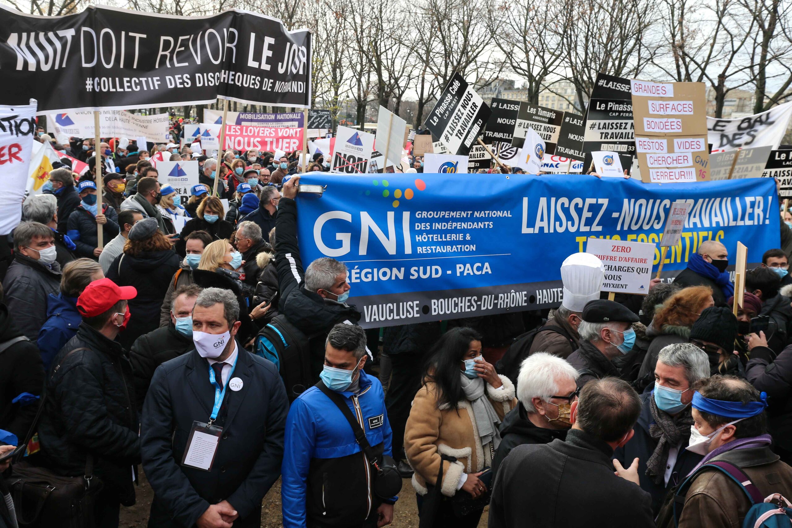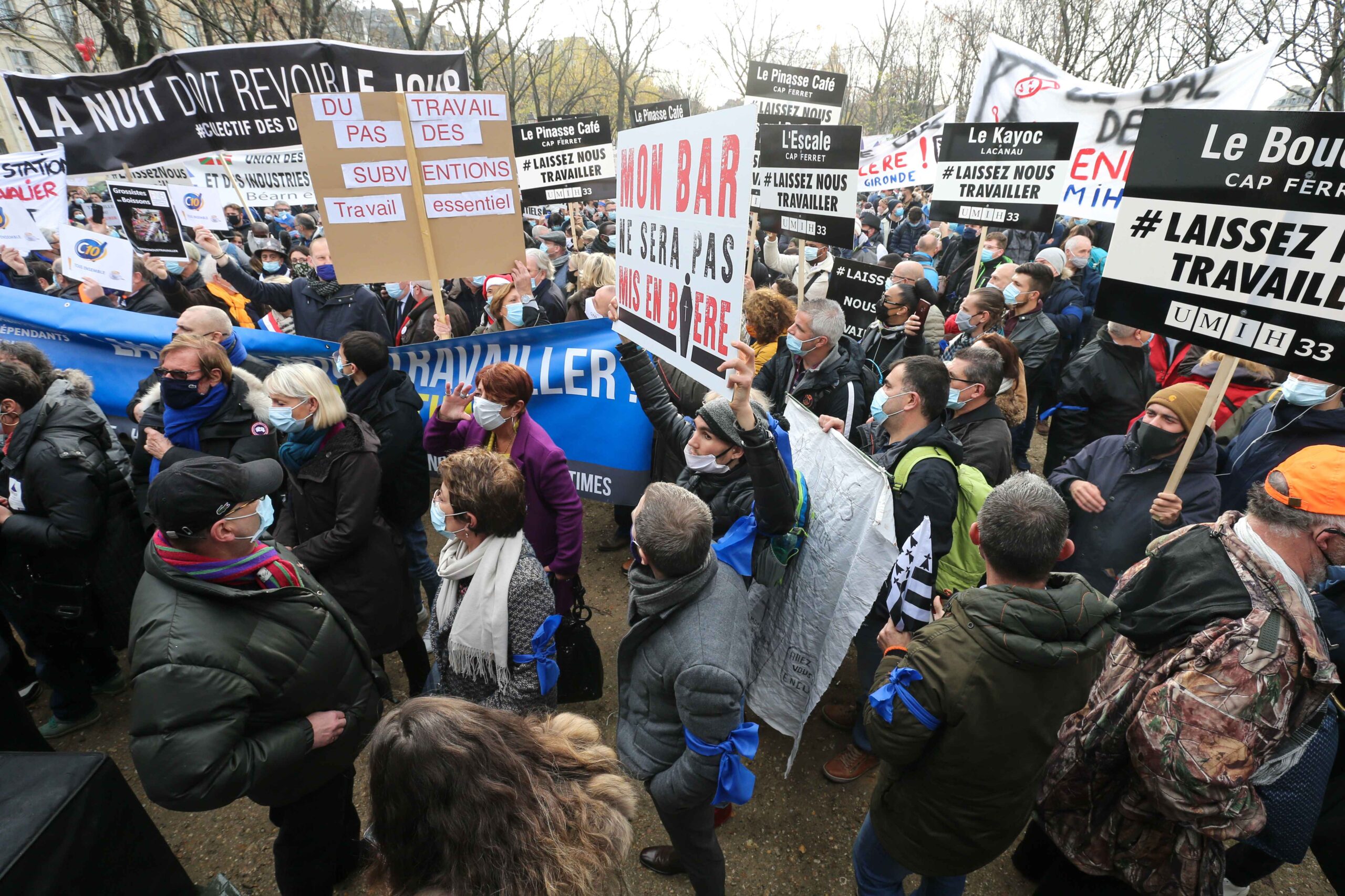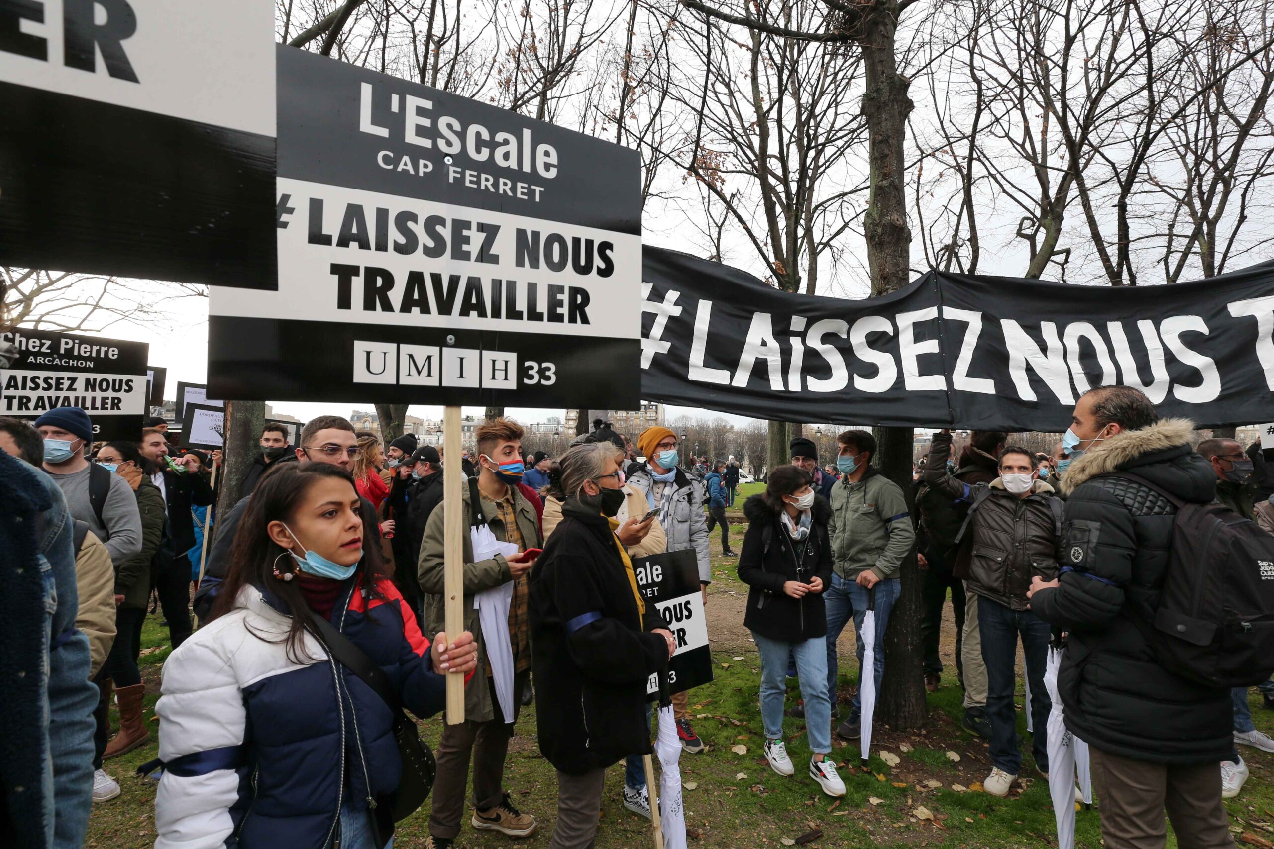 Les «professions sacrifiées» par la crise du Covid ont décidé de descendre massivement dans la rue. Ce lundi 14 décembre 2020, les gérants de restaurants, cafés, brasseries, traiteurs, hôtels, discothèques mais aussi établissements de nuit, bowlings et thalassos, venus de toute la France, ont manifesté à Paris pour réclamer la réouverture «le plus rapidement possible» de leurs établissements. Ce rassemblement, initié par l’Union des métiers et des industries de l’hôtellerie (UMIH) ainsi que le Groupement national des indépendants (GNI), a débuté vers 13 heures, sur l’esplanade des Invalides. Les prestataires ainsi que les fournisseurs (brasseurs, viticulteurs, agriculteurs, métiers de bouche, primeurs, blanchisseurs…) étaient aussi représentés.