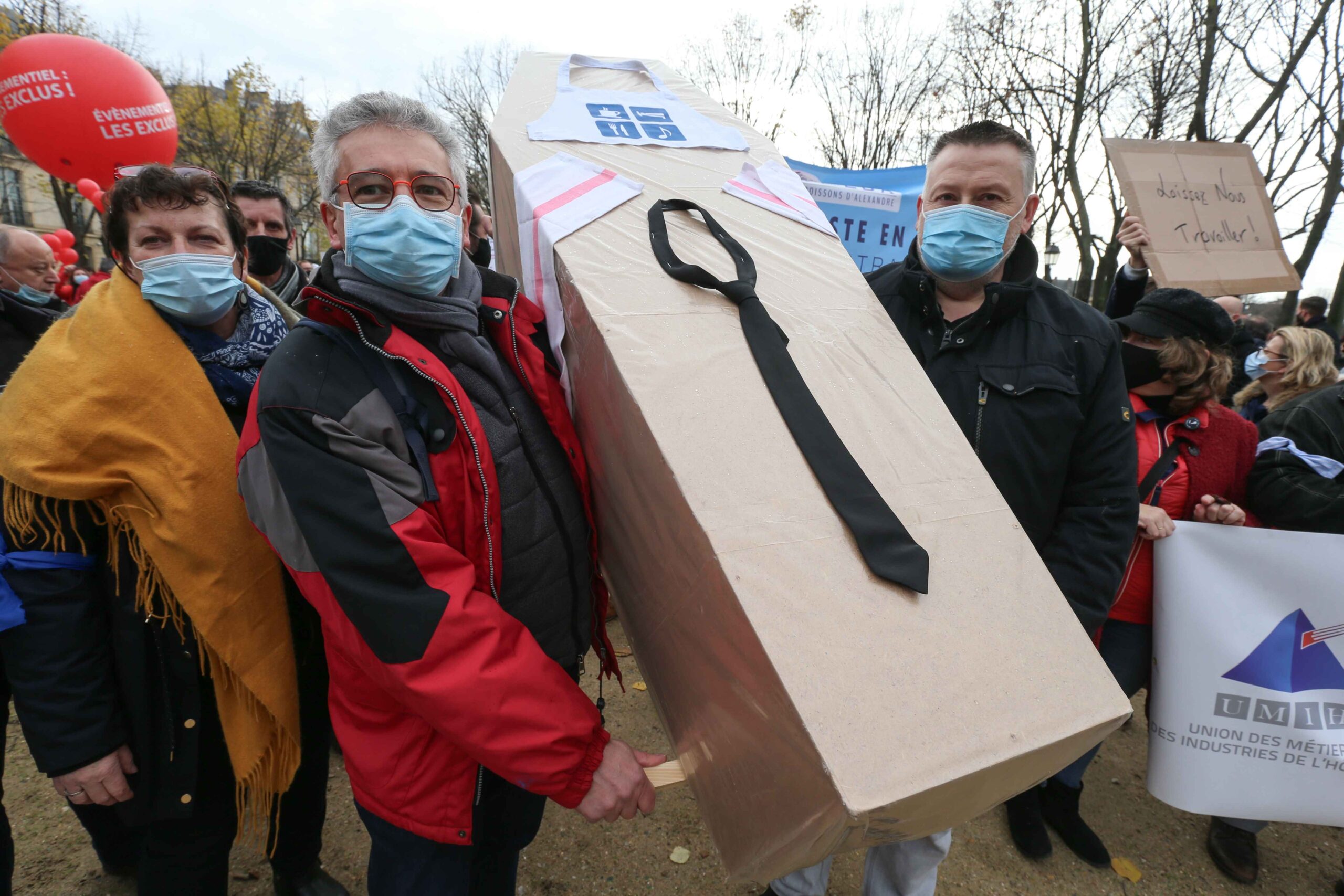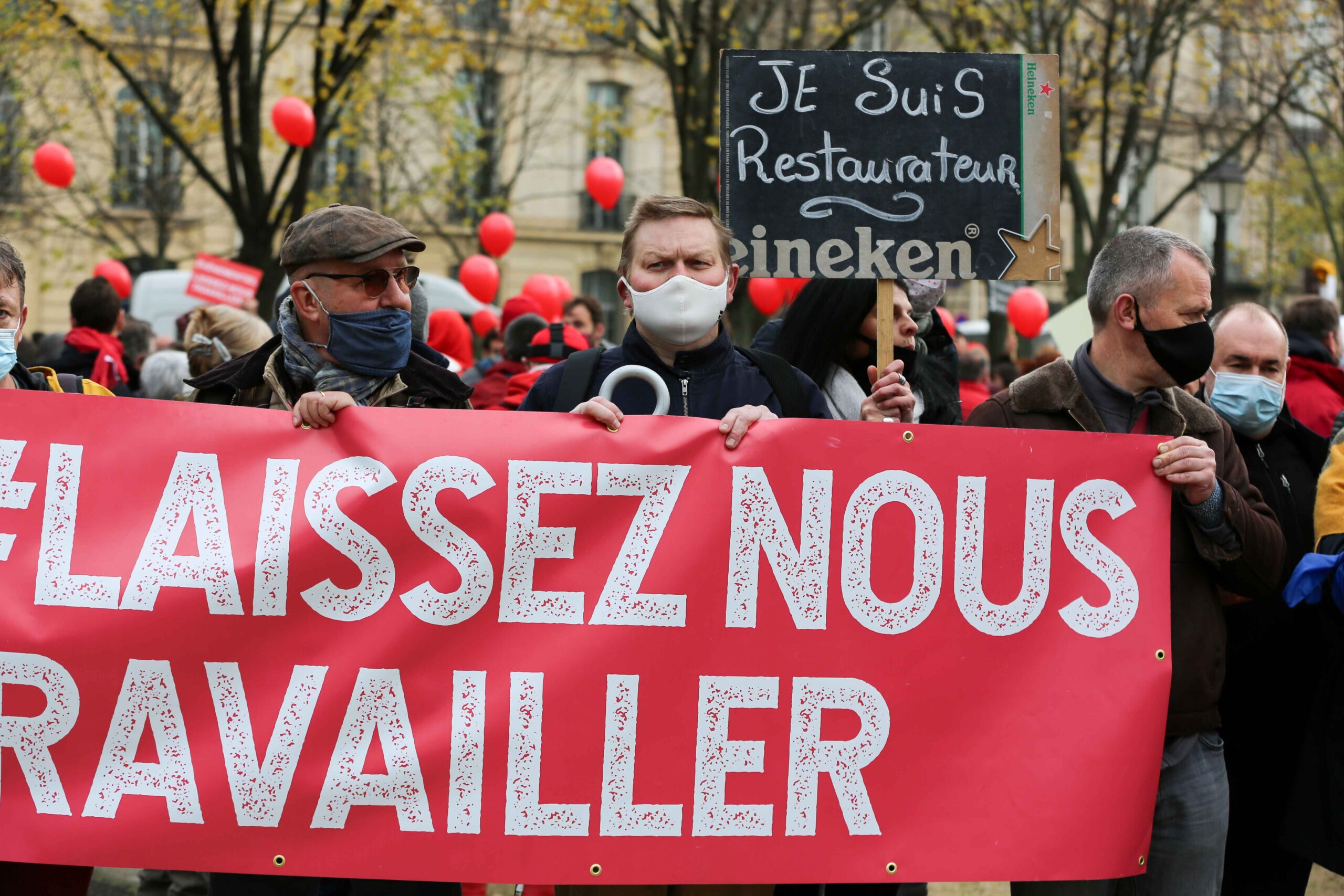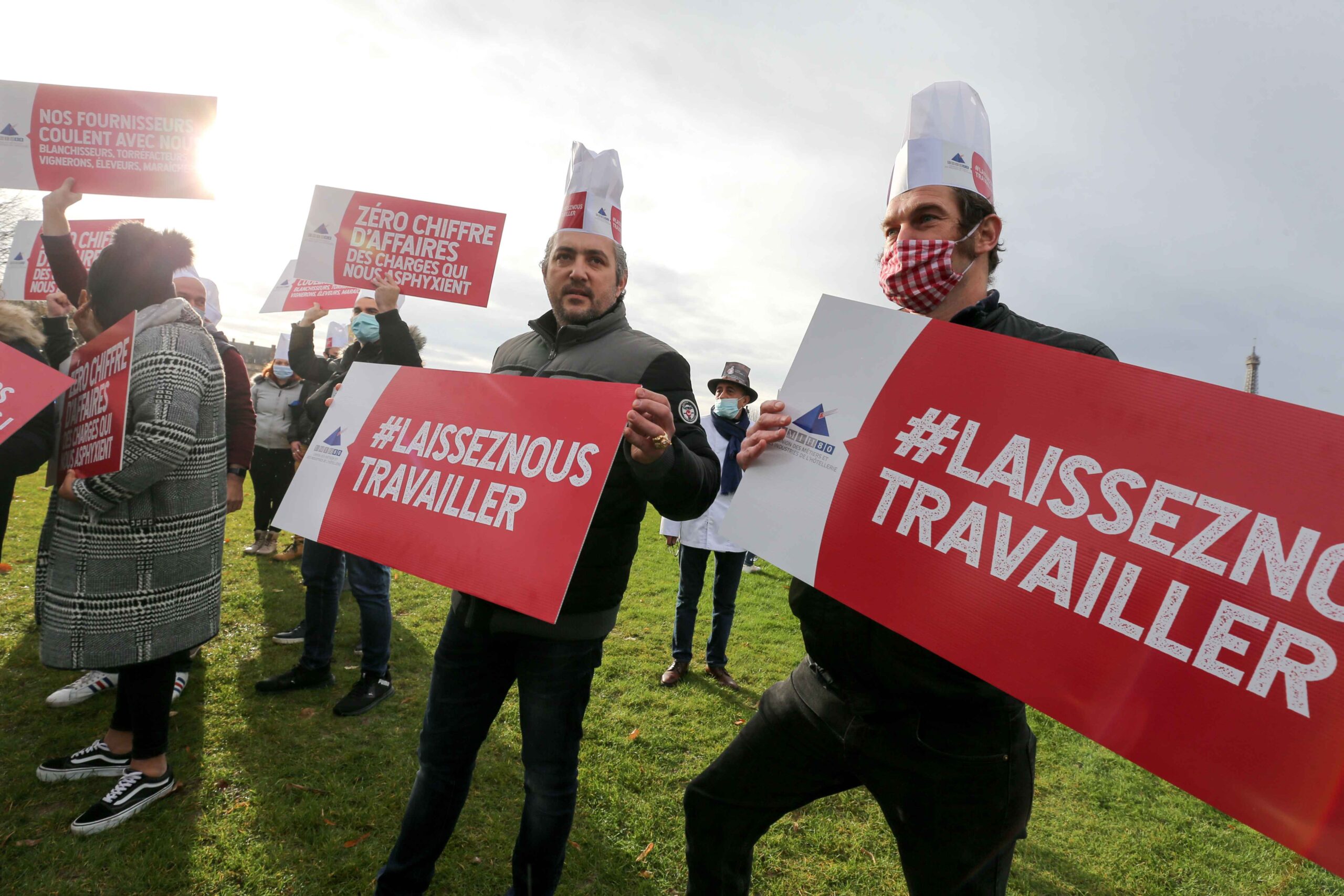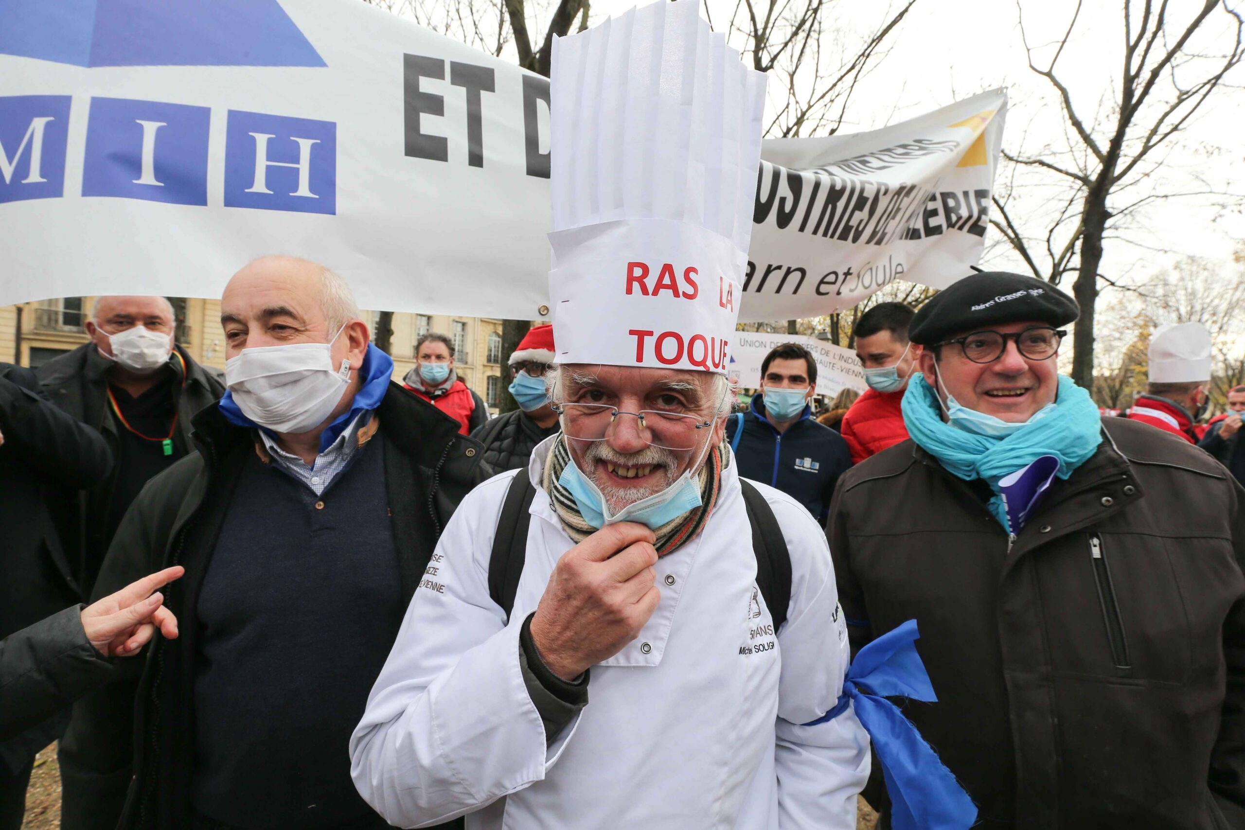 Les «professions sacrifiées» par la crise du Covid ont décidé de descendre massivement dans la rue. Ce lundi 14 décembre 2020, les gérants de restaurants, cafés, brasseries, traiteurs, hôtels, discothèques mais aussi établissements de nuit, bowlings et thalassos, venus de toute la France, ont manifesté à Paris pour réclamer la réouverture «le plus rapidement possible» de leurs établissements. Ce rassemblement, initié par l’Union des métiers et des industries de l’hôtellerie (UMIH) ainsi que le Groupement national des indépendants (GNI), a débuté vers 13 heures, sur l’esplanade des Invalides. Les prestataires ainsi que les fournisseurs (brasseurs, viticulteurs, agriculteurs, métiers de bouche, primeurs, blanchisseurs…) étaient aussi représentés.