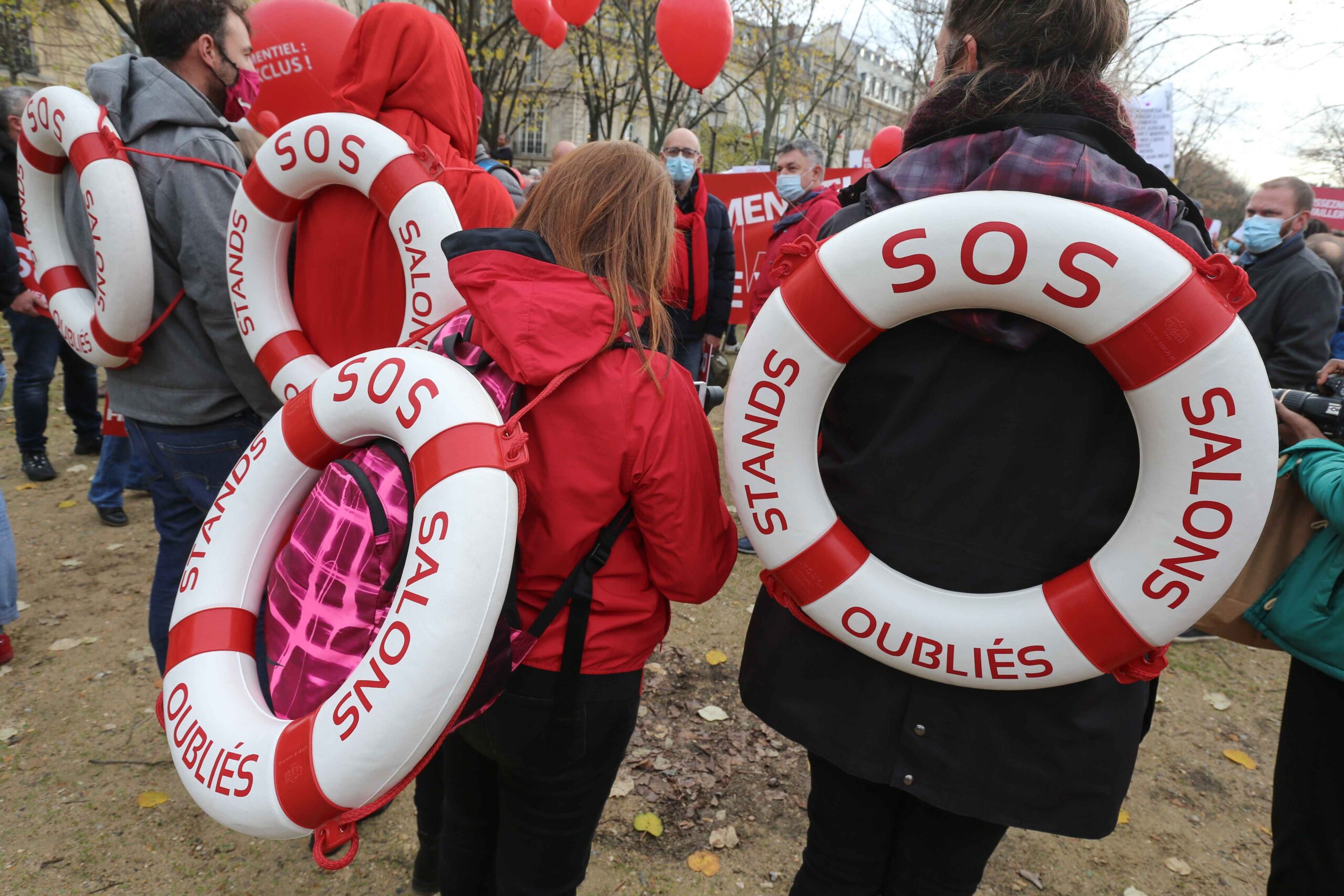 L’Organisation du personnel de la restauration en événementiel (OPRE) a également décidé de se joindre à l’appel de l’Umih et du GNI. L’aide de 900€ promise par le gouvernement n’a pas calmé les professionnels du secteur qui ont réalisé une «action coup de poing» à deux pas du ministère du Travail à 12h40. L’objectif pour eux est d’obtenir«une année blanche», comme «nos cousins intermittents du spectacle qui travaillent de la même façon que nous», explique Nathalie, maître d’hôtel dans la restauration événementielle, qui était sur place.